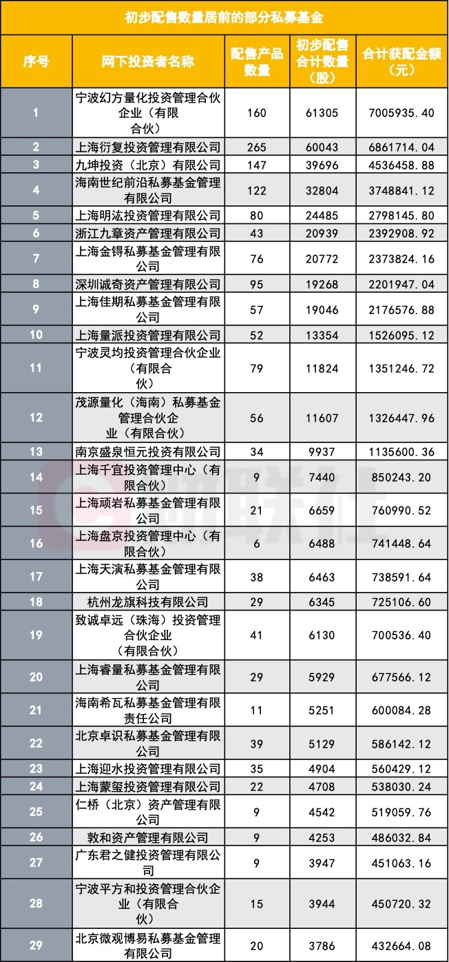 在激烈的配售竞争中,一批实力公募基金成为本轮获配大赢家,年金管理机构同样通过数量庞大的计划组合包揽大量配额。而在非A类的B类投资者中,部分量化私募及券商自营也挤入获配名单,但规模与分布则明显收紧。
