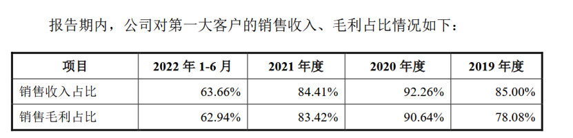 奥拉股份在回复函中表示,随着公司对其他头部客户开拓的完成及合作的深入,公司来自于其他客户的收入和毛利大幅增加,对第一大客户的销售收入和毛利占比持续大幅下降,2022年1-6月,该公司对第一大客户的收入及毛利占比已分别下降至63.66%、62.94%,占比超过五成。