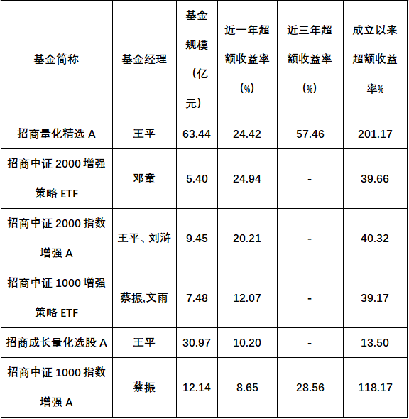 这套“慢”体系在业绩端也得到了验证。招商基金旗下量化产品中,多只近一年超额收益率超过10%(截至9月30日,取收益率更高份额,下同),其中招商量化精选A近一年超额收益达到24.42%,近三年和成立以来的超额收益率分别达到57.46%和201.17%。另外招商中证2000增强策略ETF和招商中证2000指数增强A的近一年超额收益率也超过20%。
