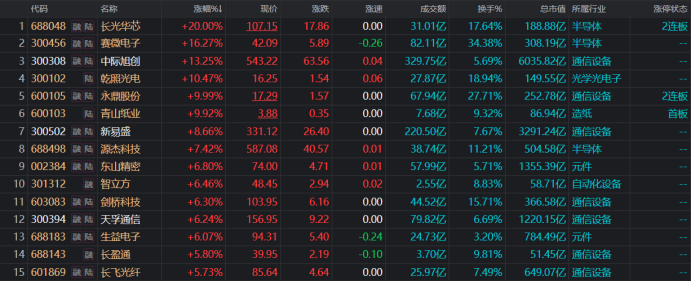 注:CPO概念股表现活跃(截至11月26日收盘)