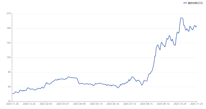 从资金面来看,中际旭创此前持续回落的融资余额在近期略有回升。截至11月25日数据,其目前融资余额规模达185.10亿元,近10个交易日累计获融资客加仓近11.24亿元,融资余额增幅近6.4%。其中,在11月12日,中际旭创单日融资净买额达10.6亿元,为历史第8高峰值数据。目前,中际旭创融资余额规模较再创历史新高还相差16.34亿元。