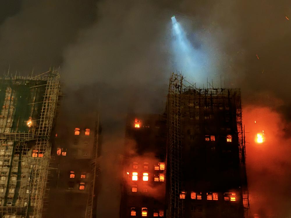 财联社11月27日讯(记者 王碧微)今日凌晨1时,财联社记者在香港大埔火灾事故现场发现,夜空中有多架无人机在火场上方盘旋。现场一名警务人员向记者确认,消防处及警方调用的无人机主要用于火场侦察与辅助照明。