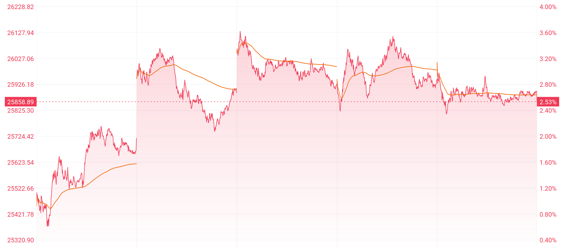 财联社11月28日讯(编辑 胡家荣)本周港股三大指数集体上涨。截至周五收盘,恒生指数累计上涨2.53%,报25858.89点;恒生科技指数累计上涨3.77%,报5599.11点;国企指数累计上涨2.36%,报9130.18点。