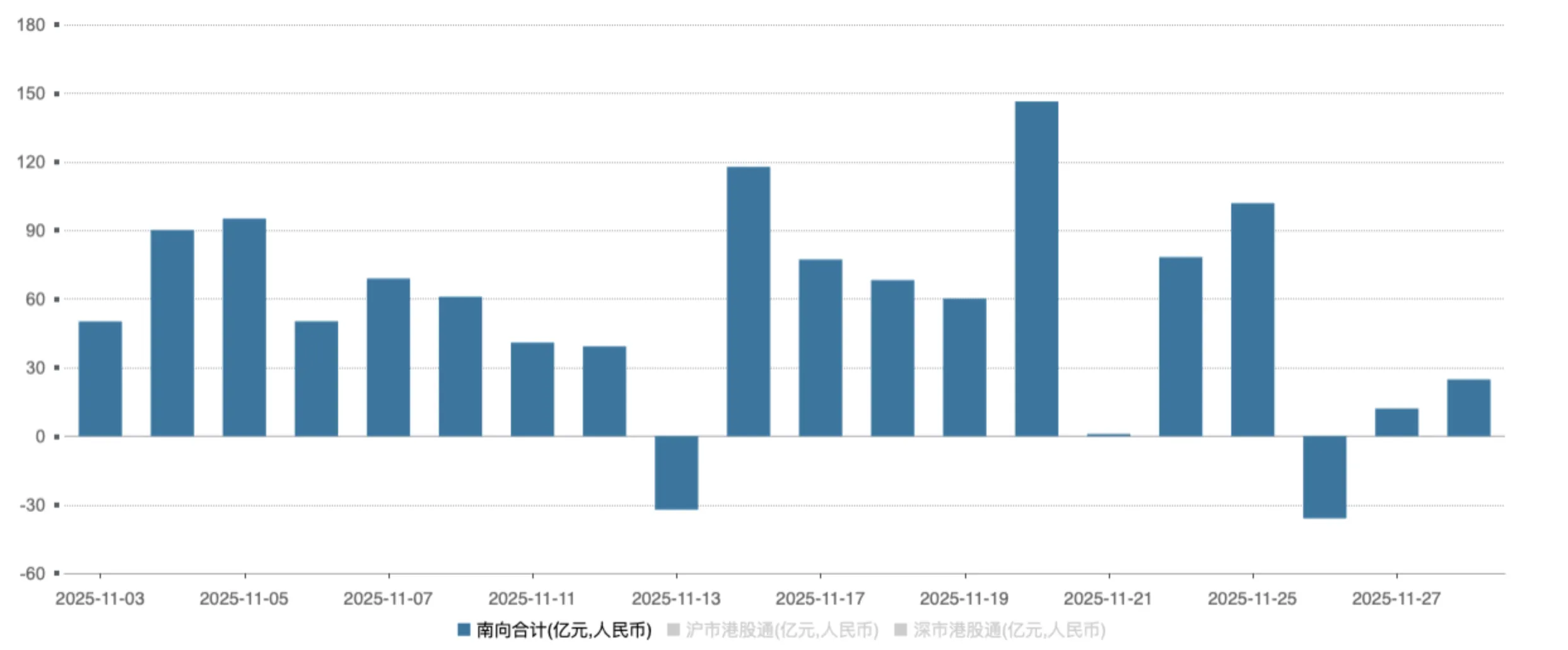 进入11月后,港股行情出现回落。尤其是中旬以后,恒指加速向下回调。但与此同时,南向资金也逆势加大流入力度。