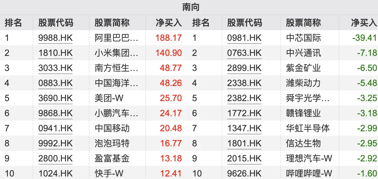 ①南向资金当日成交约866亿港元,资金持续流入哪些个股?