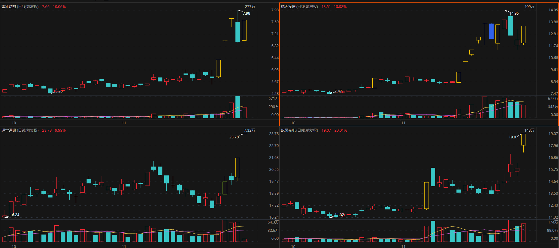 财联社11月29日讯(编辑 平方)据国家航天局消息,该局已于近期设立商业航天司,相关业务正在逐步开展,标志着我国商业航天产业迎来专职监管机构,未来将持续推动我国商业航天高质量发展,产业链有望全线受益。二级市场方面,商业航天概念股表现活跃,截至周五收盘,航天发展11天7板,雷科防务5天4板,通宇通讯2连板,乾照光电、航天环宇20CM涨停,顺灏股份、四川金顶一字涨停。