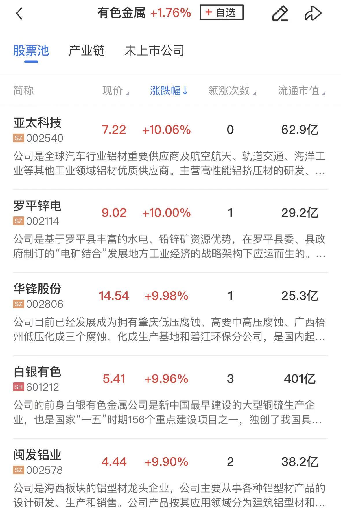有色金属板块同样走强,白银有色、闽发铝业、亚太科技、罗平锌电涨停,天华新能、江西铜业、湖南白银、云南铜业等个股涨幅居前。