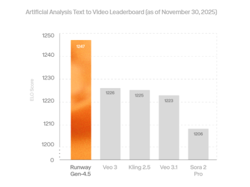 ①美国人工智能初创公司Runway推出Gen-4.5视频模型,在独立基准测试中表现优于谷歌和OpenAI同类产品;