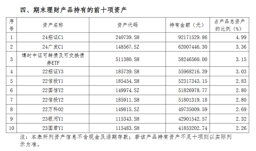 财联社查询该产品三季报,截至2025年9月末,其持有“22万科02”的金额4973万元,占产品总资产比例为2.69%,万科债为其前十大持仓资产之一。“农银安心·每年开放”第3期人民币理财产品今年三季度前十大持仓资产如下: