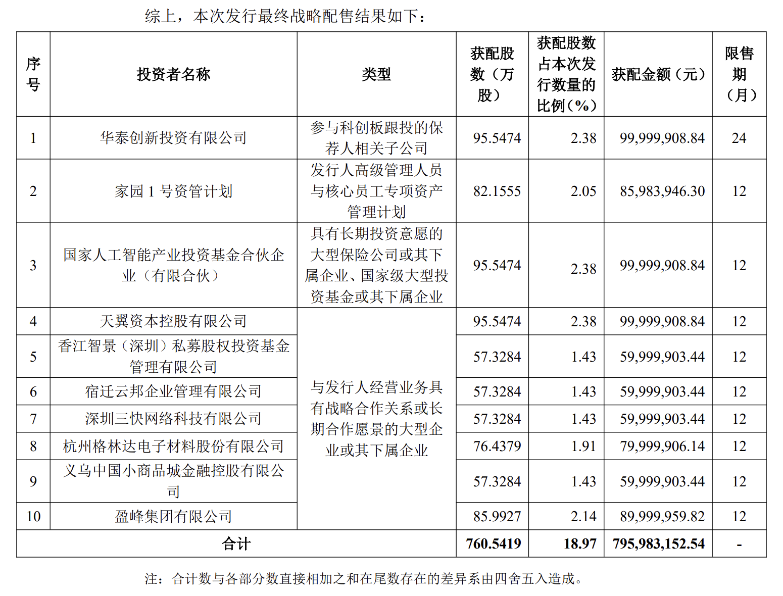 沐曦股份本次发行参与战略配售的投资者及其最终获配数量和比例出炉。