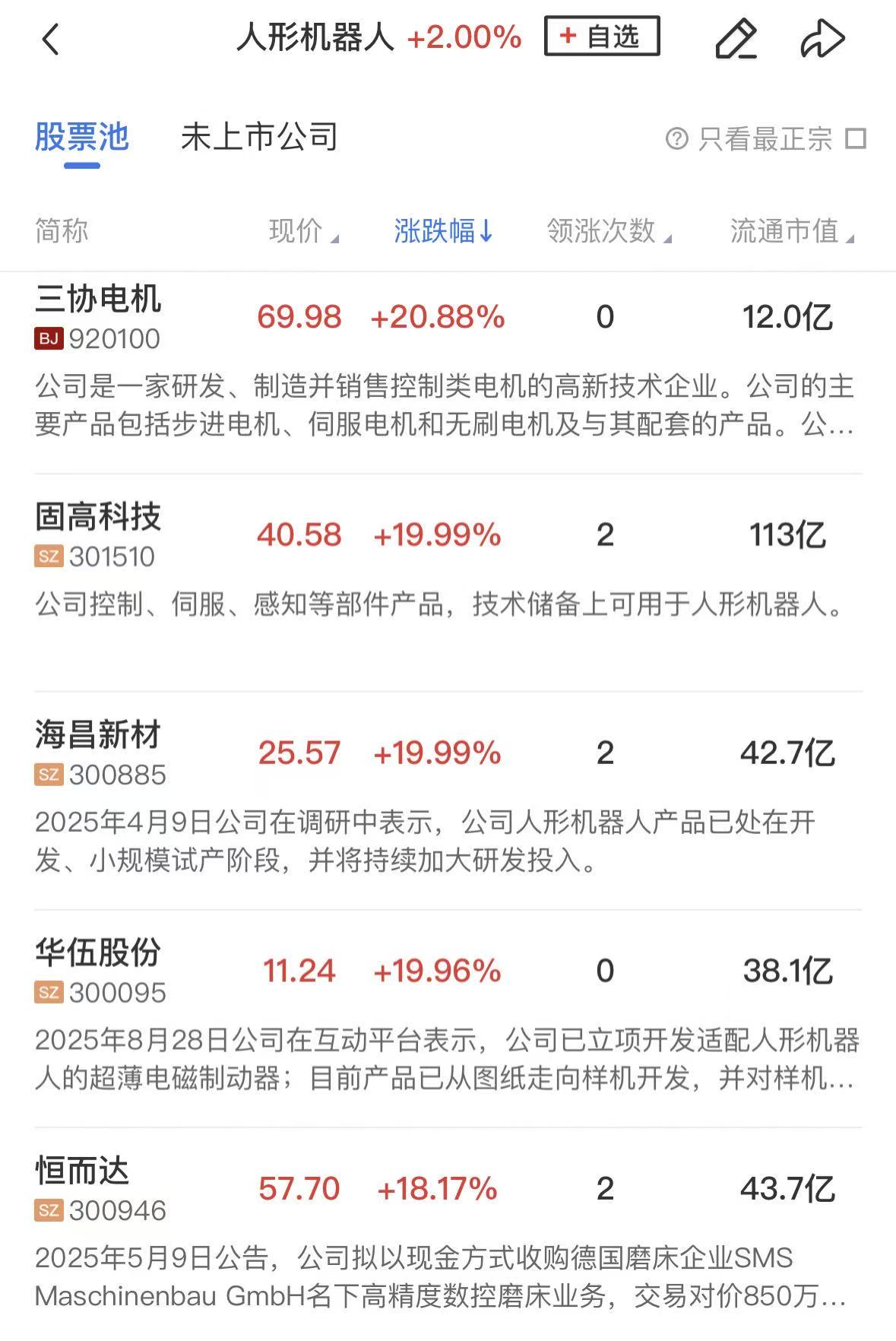 板块上,机器人概念股全线爆发,华伍股份、巨轮智能、四川金顶、睿能科技、日发精机、龙溪股份等个股涨停。
