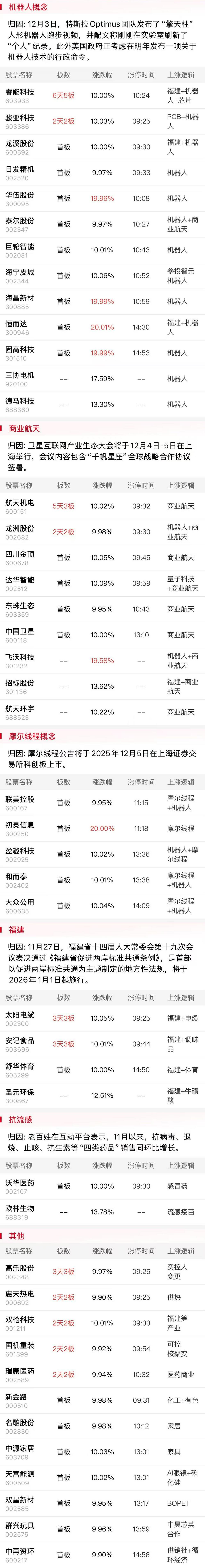 昨晚马斯克在社交平台X转发特斯拉擎天柱(Optimus)团队发布的一段“擎天柱”人形机器人跑步的短视频。此外美国商务部长卢特尼克近期密集会晤机器人行业CEO,明确表示政府将“全力支持”该行业加速发展。多重利好提振下,机器人概念全天表现强势,恒而达、海昌新材、睿能科技等多股涨停,权重股三花智控盘中一度冲板。随着美国商务部表态积极推动机器人制造,彰显其加码该领域决心。除去特斯拉量产在即等海外催化因素外,国内宇树科技IPO进展持续推进,加上众擎机器人宣布,全尺寸极致高效能通用人形机器人众擎T800正式发布,全球机器人领域仍处于百花齐放的齐头并进态势,因此对于国内宇树供应链以及海外T链方面存在批量供货预期的核心标的仍可积极关注。