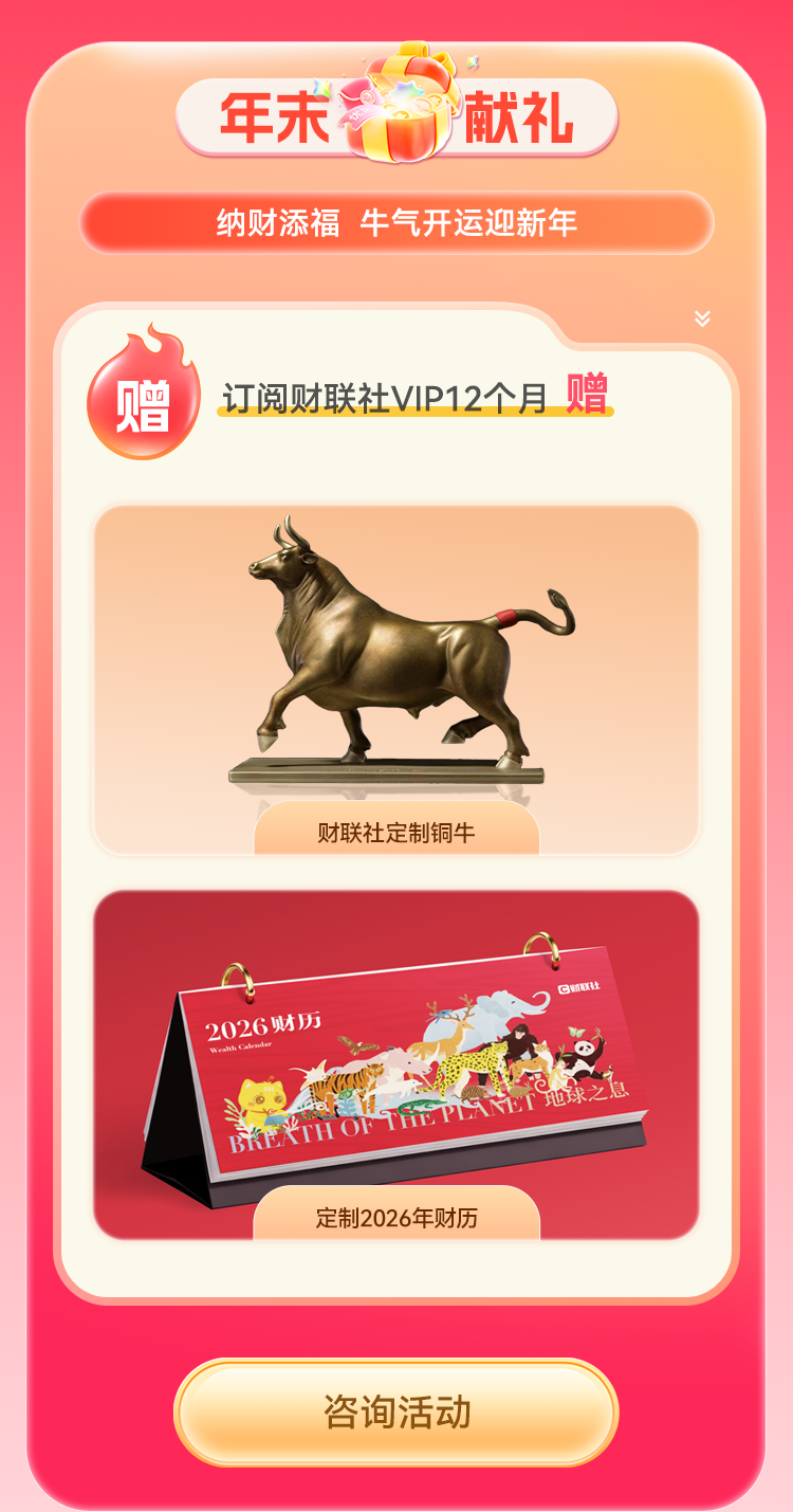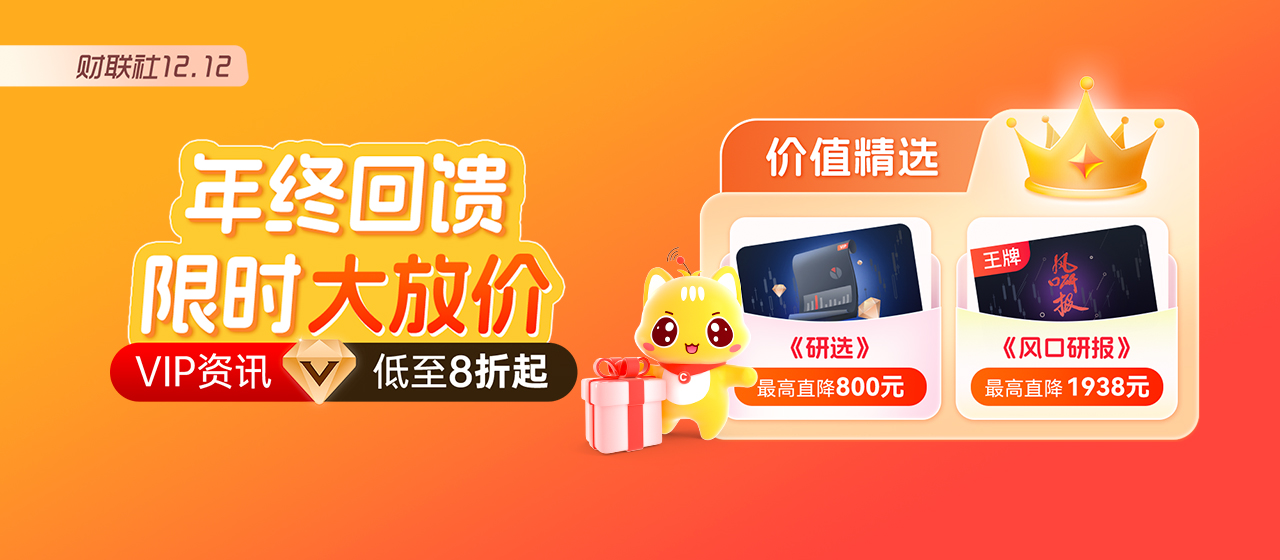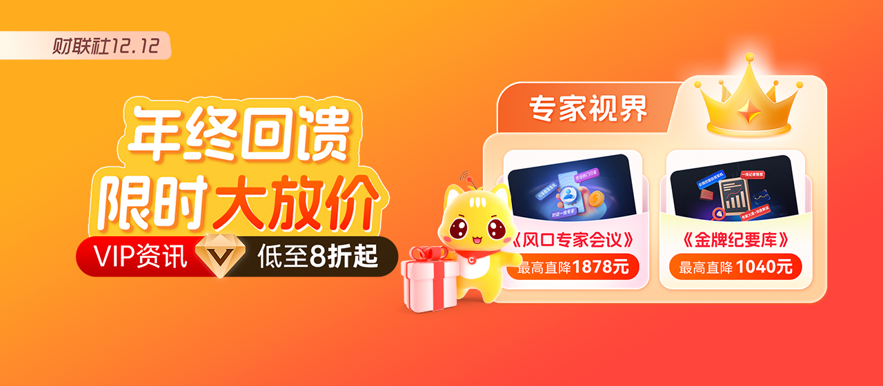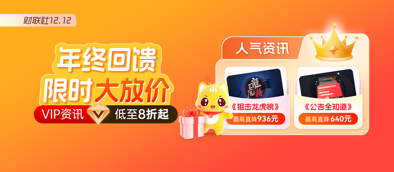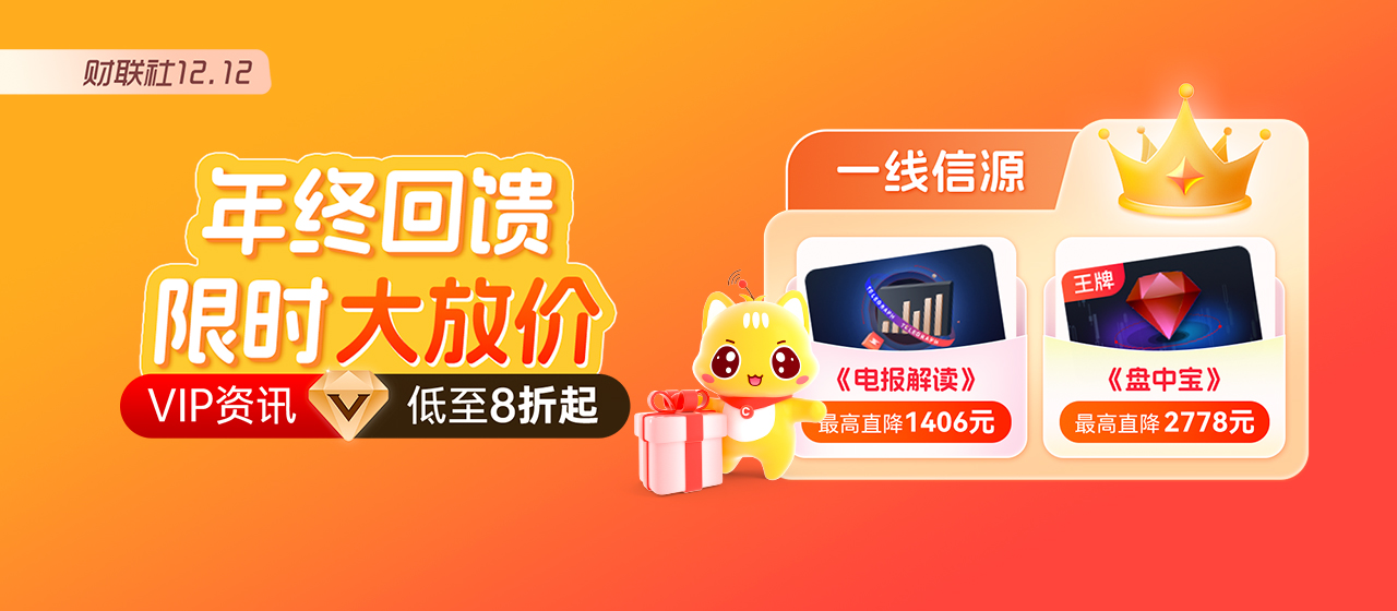 股市行情瞬息万变,优质资讯则是投资者的“掘金密钥”。正值双十二年终回馈,财联社VIP大促已进入最后倒计时!全场资讯低至8折、钻石会员卡直降万元,还有定制铜牛摆件、新年财历等专属好礼加持,不管是想补充投资弹药的老用户,还是想入门高端资讯的新财友,这波福利都千万别错过!