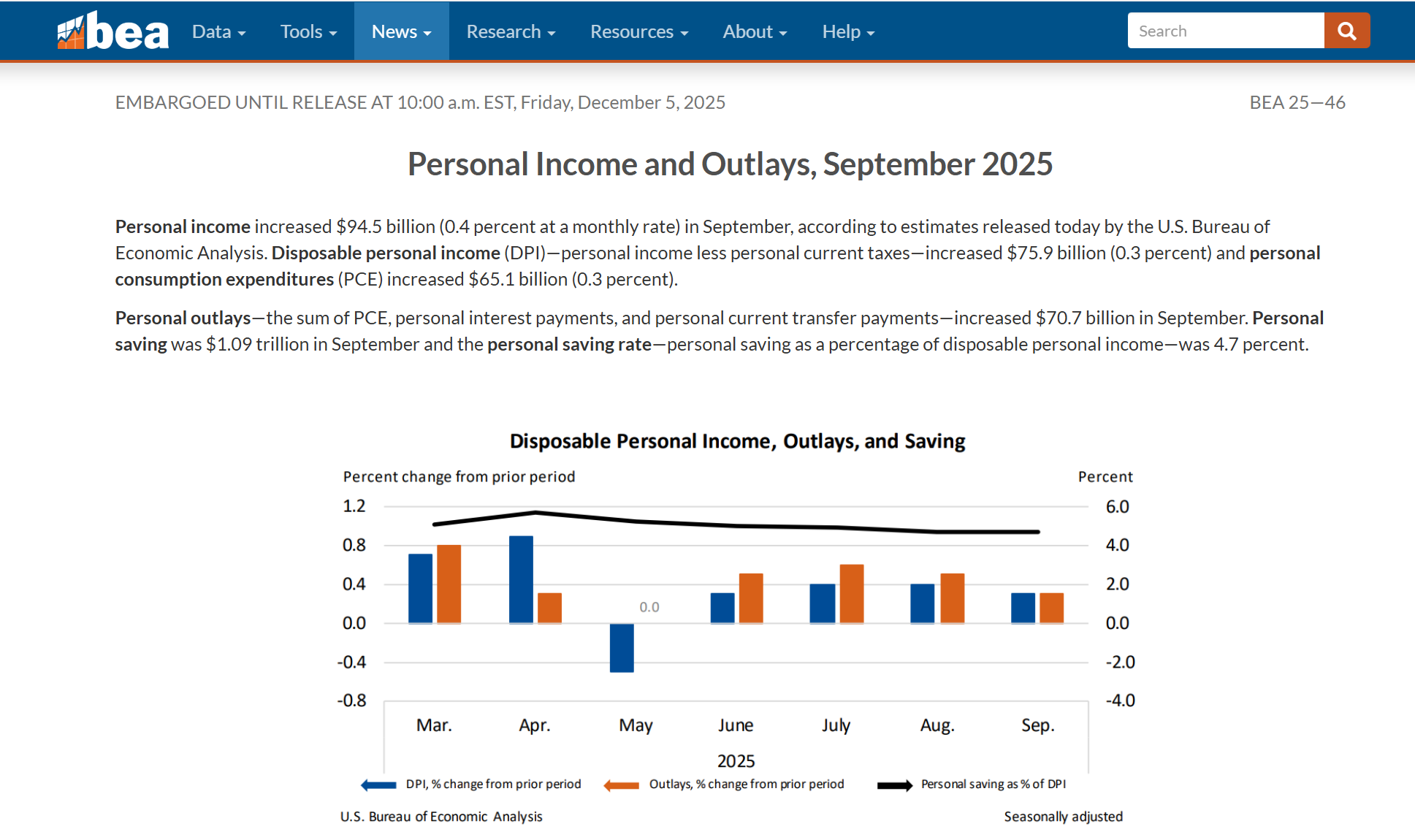 财联社12月6日讯(编辑 史正丞)北京时间周五深夜,美国商务部经济分析局披露迟来的9月个人收入与支出数据。略低于预期的通胀对下周美联储降息的判断几乎没有影响,消费支出的停滞显示美国经济早在10月政府停摆前已经放缓。