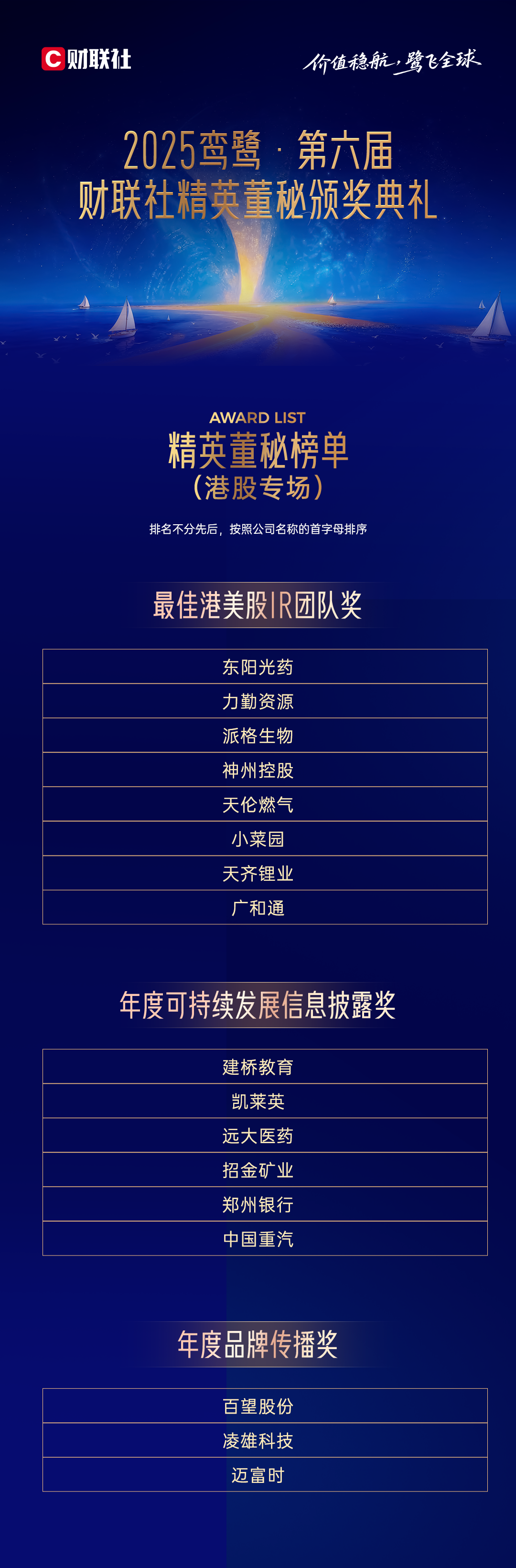 大会最后,财联社颁发第六届“精英董秘榜单”。以卓越实践展现治理担当,携手推动企业高质量发展,共启资本市场的创新未来!