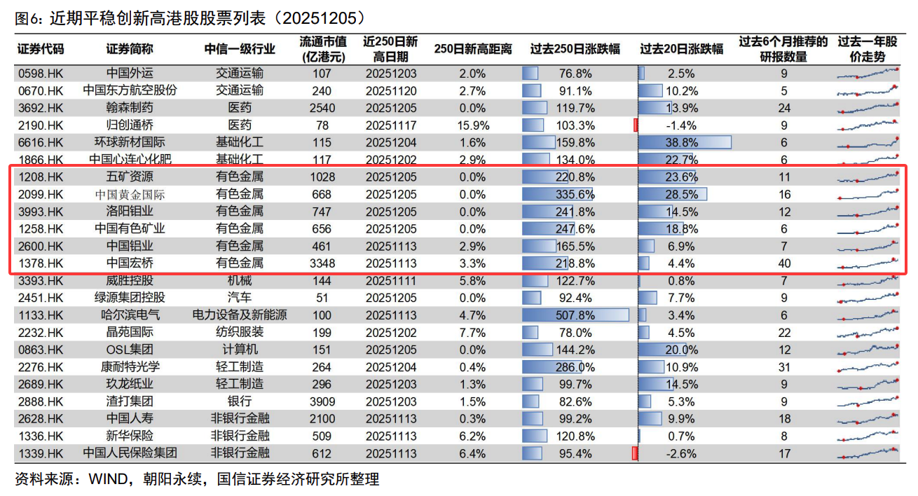 其中五矿资源(01208.HK)、中国黄金国际(02099.HK)、洛阳钼业(03993.HK)等板块龙头近20日涨幅均超两位数,凸显短线强势。
