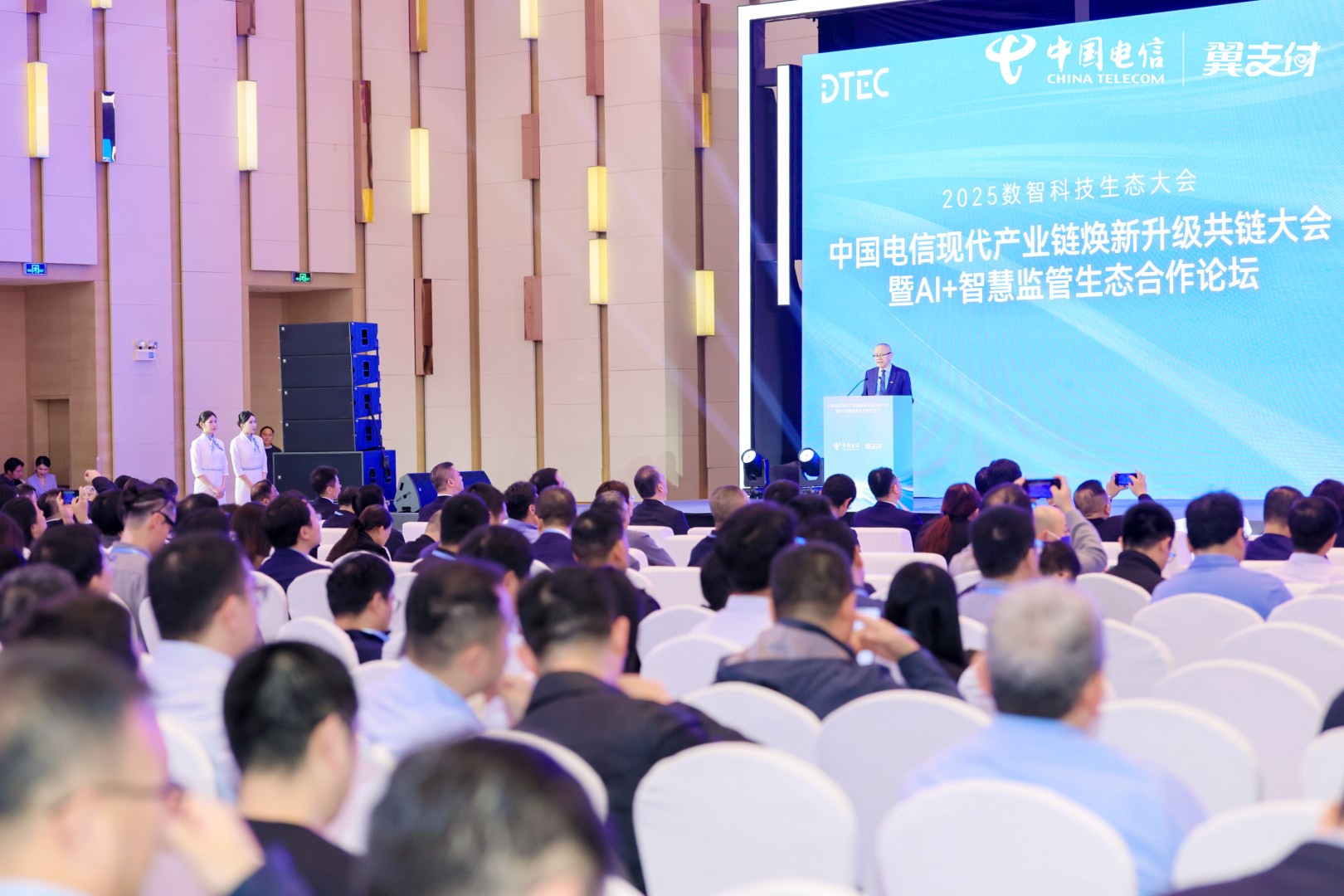 在此背景下,12月5日,2025数智科技生态大会期间的“中国电信现代产业链焕新升级供应链大会暨AI+智慧监管生态合作论坛”上,来自数字消费、智慧监管、财司等领域生态合作伙伴齐聚一堂,天翼支付科技有限公司(以下简称“翼支付”)重点发布多项科技能力,不仅展示了翼支付产业生态的繁荣,更对未来路径做出清晰谋划。
