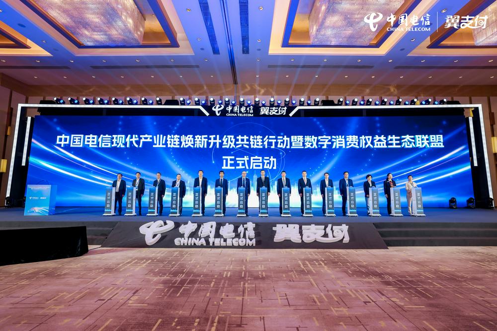 此次论坛上,中国电信现代产业链焕新升级共链行动暨数字消费权益生态联盟启动仪式举行。