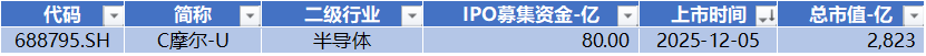 经wind查询,本周1家科创板公司IPO:摩尔线程,募集资金80亿元。