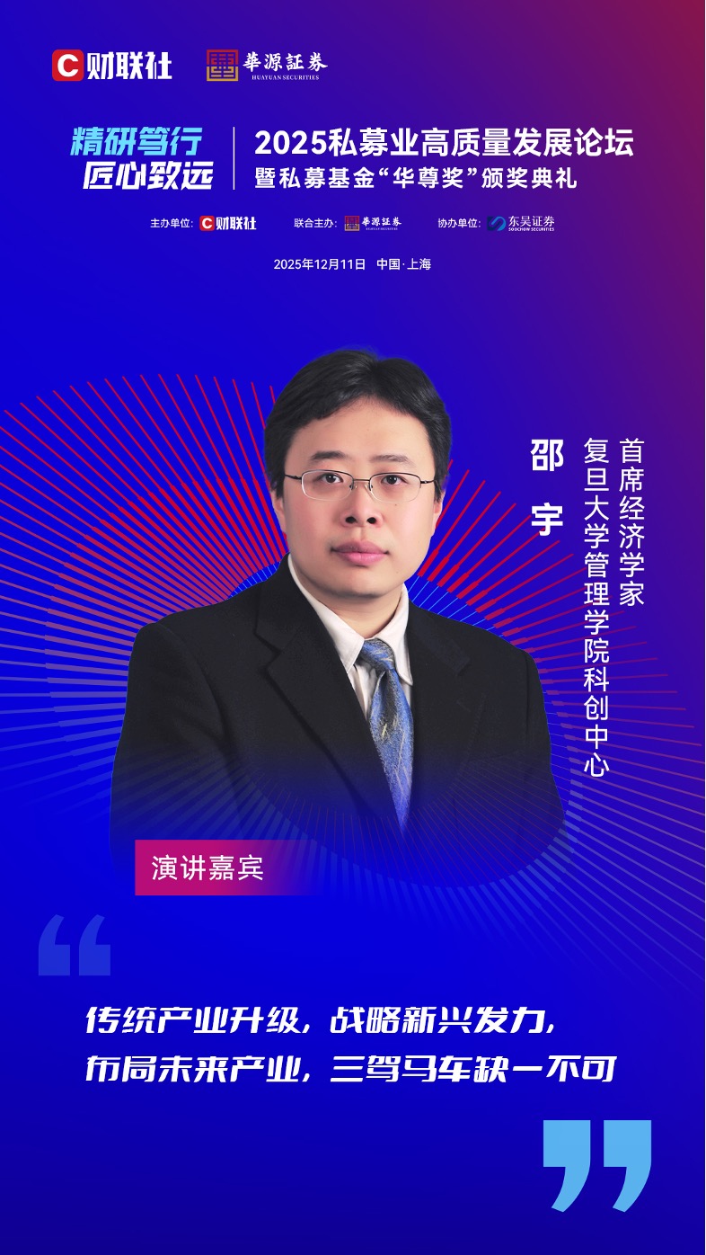 邵宇同时也是国家金融与发展实验室特聘高级研究员。作为兼具政商学界阅历的资深经济学家,也作为业界高度认可的新一代海派经济学家领军人物,邵宇近年来持续关注中国经济结构转型与金融改革,在“十四五”与“十五五”承上启下的关键节点,以科技创新为核心的新质生产力将成为驱动经济增长的核心引擎。相信他的演讲,将为私募机构布局未来五年乃至更长时间的战略方向,提供至关重要的宏观框架与产业洞察。