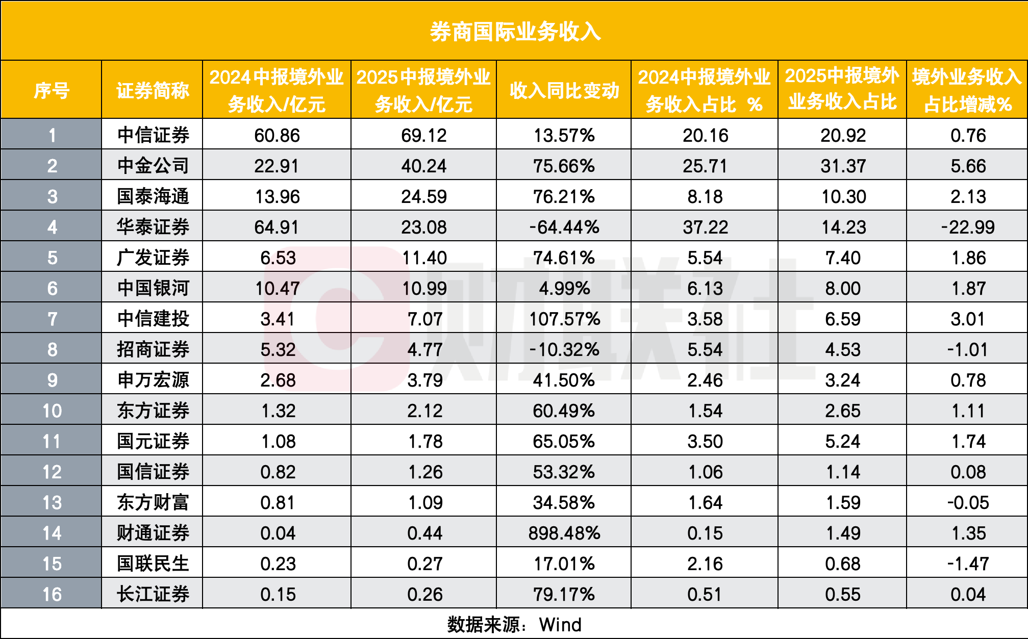 数据显示,2025年上半年,中资券商海外业务收入前8家市场份额达到94%,前3家市场份额高达66%,头部券商占据绝对主导地位。
