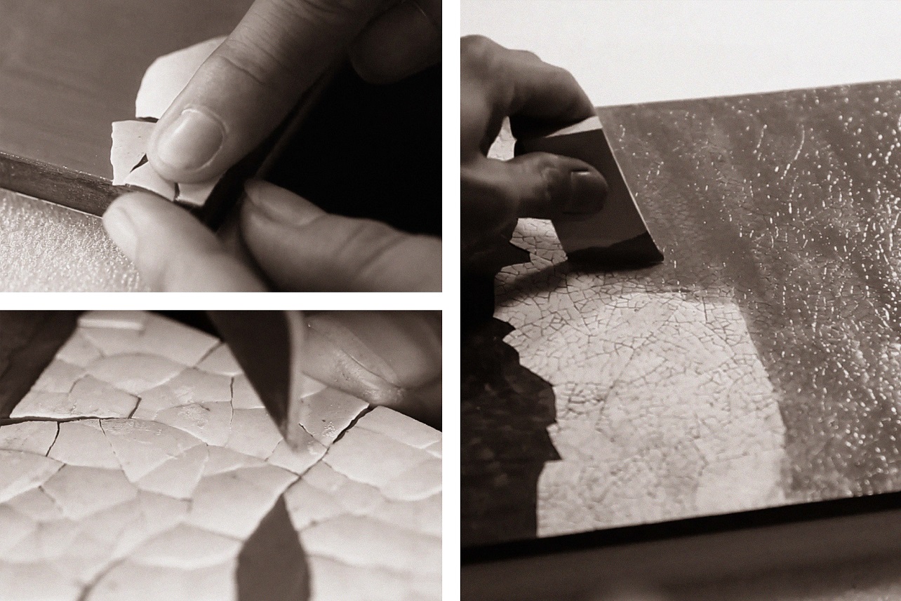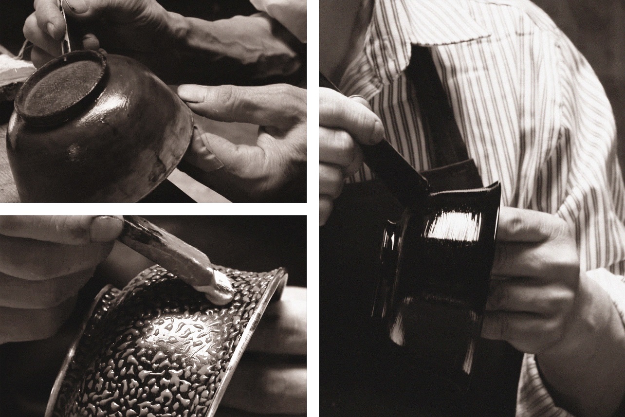 这一系列的创作,让古老技艺在当代焕发新生,器物不仅作为美学对象被欣赏,更在使用中被感知、被理解,既承载手工艺的生命力,也回应当代生活的审美与尺度。蛋壳漆的细腻层理,在反复髹涂与磨显中呈现轻盈而温润的纹理;竹丝镶嵌以纤细丝缕构建秩序之美,于分毫之间显露自然的呼吸与节奏;犀皮漆则以层层堆叠的色漆与漫长的推光工序,生成深邃而流动的光泽。