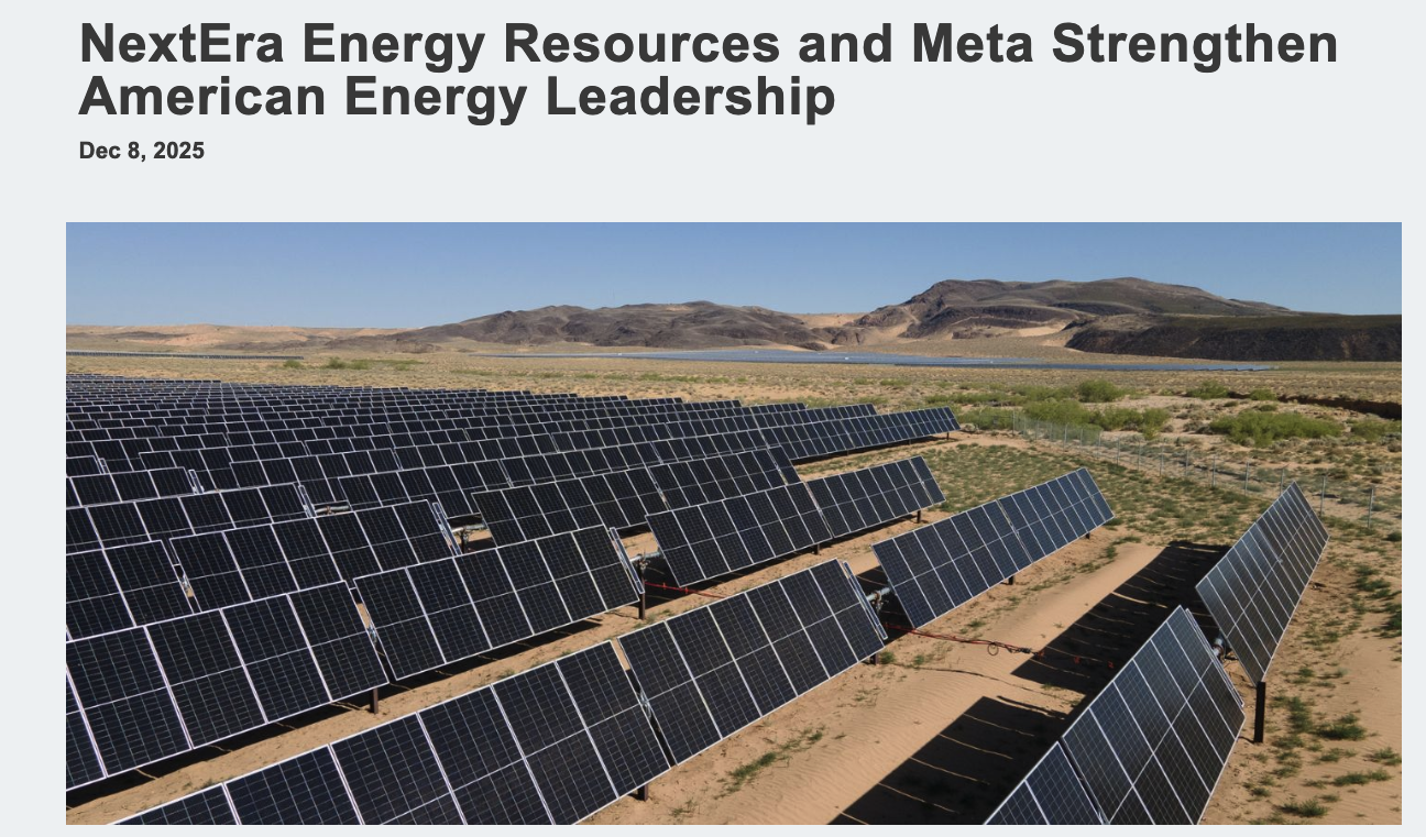 财联社12月8日讯(编辑 史正丞)全球市值最高电力股新纪元能源(NextEra Energy)周一连发两条公告,官宣与科技巨头谷歌、Meta在AI、电力领域的最新合作。