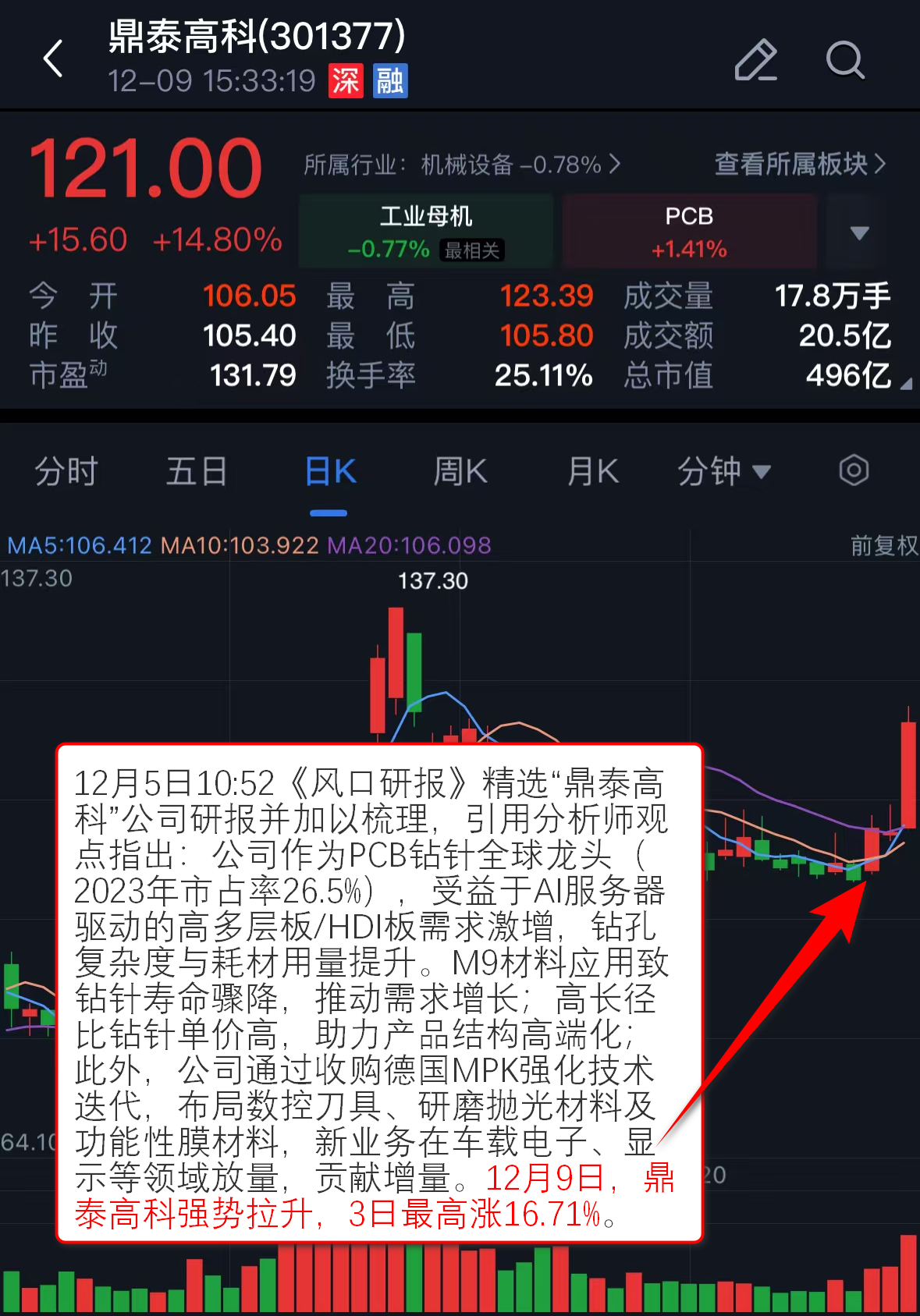 其在12月9日收获20cm涨停。