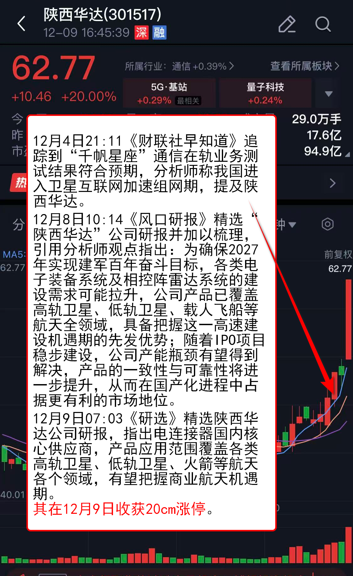 12月4日21:11《财联社早知道》追踪到“千帆星座”通信在轨业务测试结果符合预期,分析师称我国进入卫星互联网加速组网期,提及陕西华达。