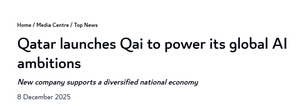 财联社12月9日讯(编辑 赵昊)当地时间周一(12月8日),卡塔尔在政府官网宣布成立国家人工智能公司“Qai”,准备将国家资源投入到这项技术之中——这一决定追随了沙特和阿联酋的做法。
