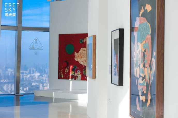 展出内容丰富,涵盖绘画、装置及影像等多种媒介的艺术作品,让不同代际、不同风格的艺术作品在,在海拔547.6米的高空展厅中为公众提供了一场兼具视觉冲击与思想深度的艺术体验。