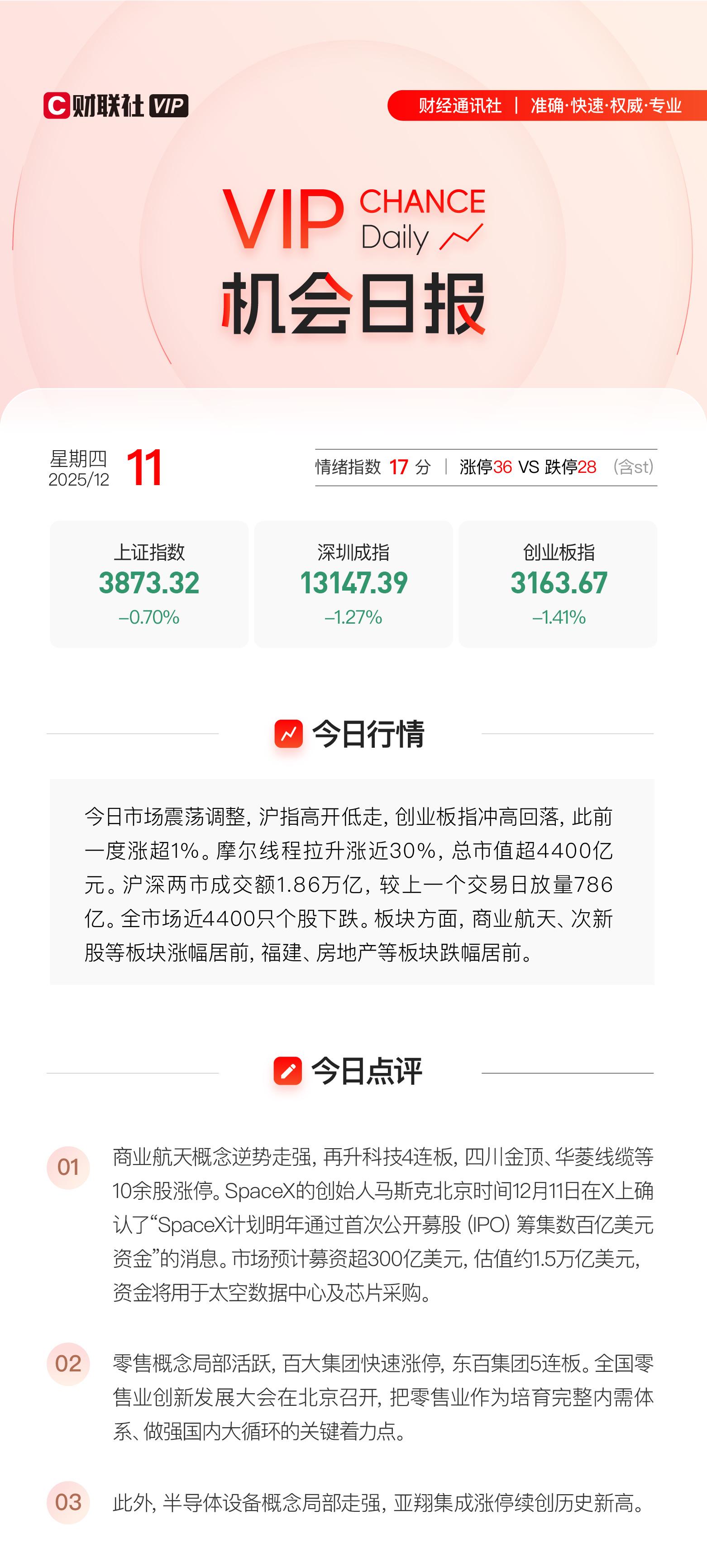 SpaceX的创始人马斯克北京时间12月11日在X上确认了“SpaceX计划明年通过首次公开募股(IPO)筹集数百亿美元资金”的消息。市场预计募资超300亿美元,估值约1.5万亿美元,资金将用于太空数据中心及芯片采购。