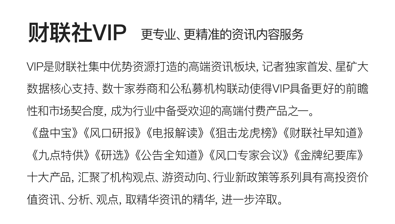 注:财联社VIP为内容资讯产品,并非投资建议。以下内容仅为资讯价值展示非对相关公司的推荐建议,非未来走势预测。投资有风险,入市需谨慎。