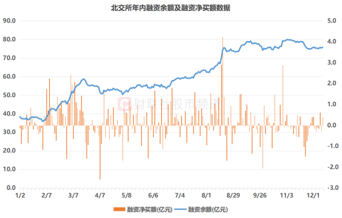 注:北交所年内融资余额及融资净买额数据(截至12月10日数据)