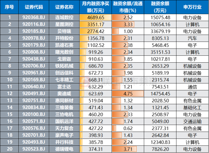 注:本月融资净买额居前的北交所股(截至12月10日数据)