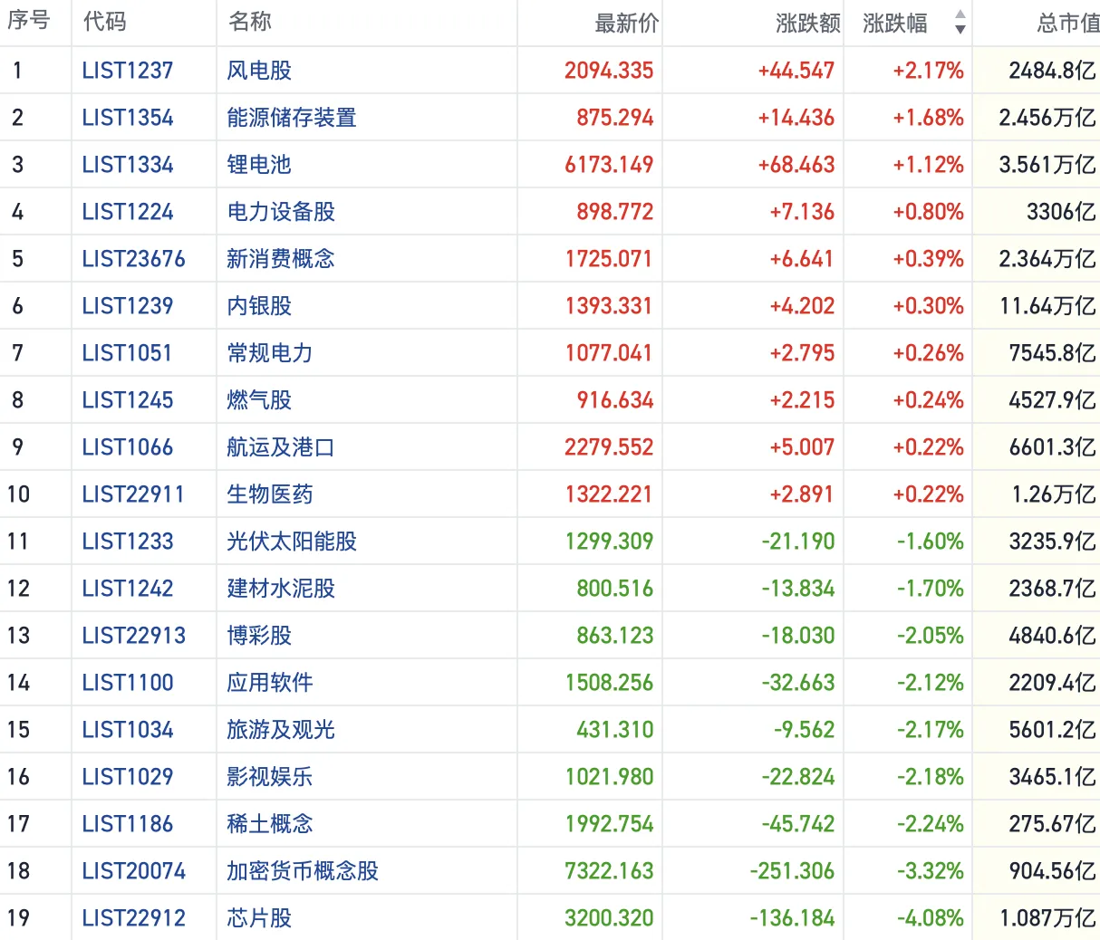 上涨的板块中,消费电子迎来明显反弹,储能、风电等新能源产业链走强,银行、航运等行业也相对活跃。
