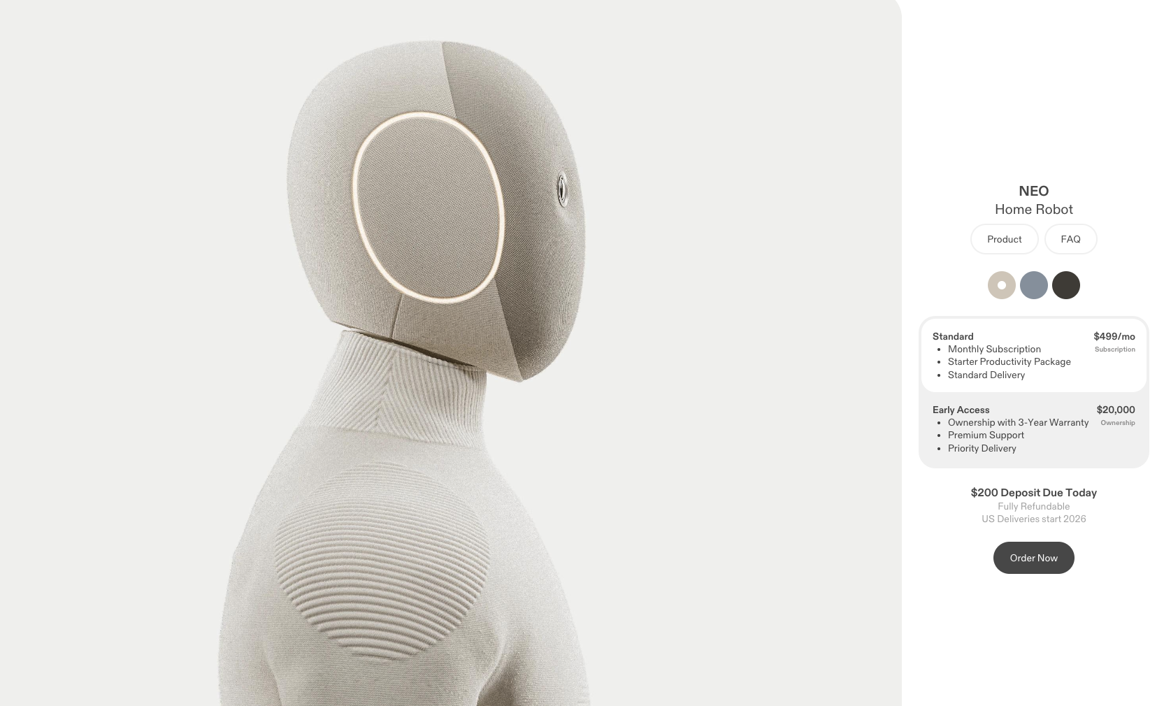 Neo的售价为2万美元,也可按照每月499美元租赁。