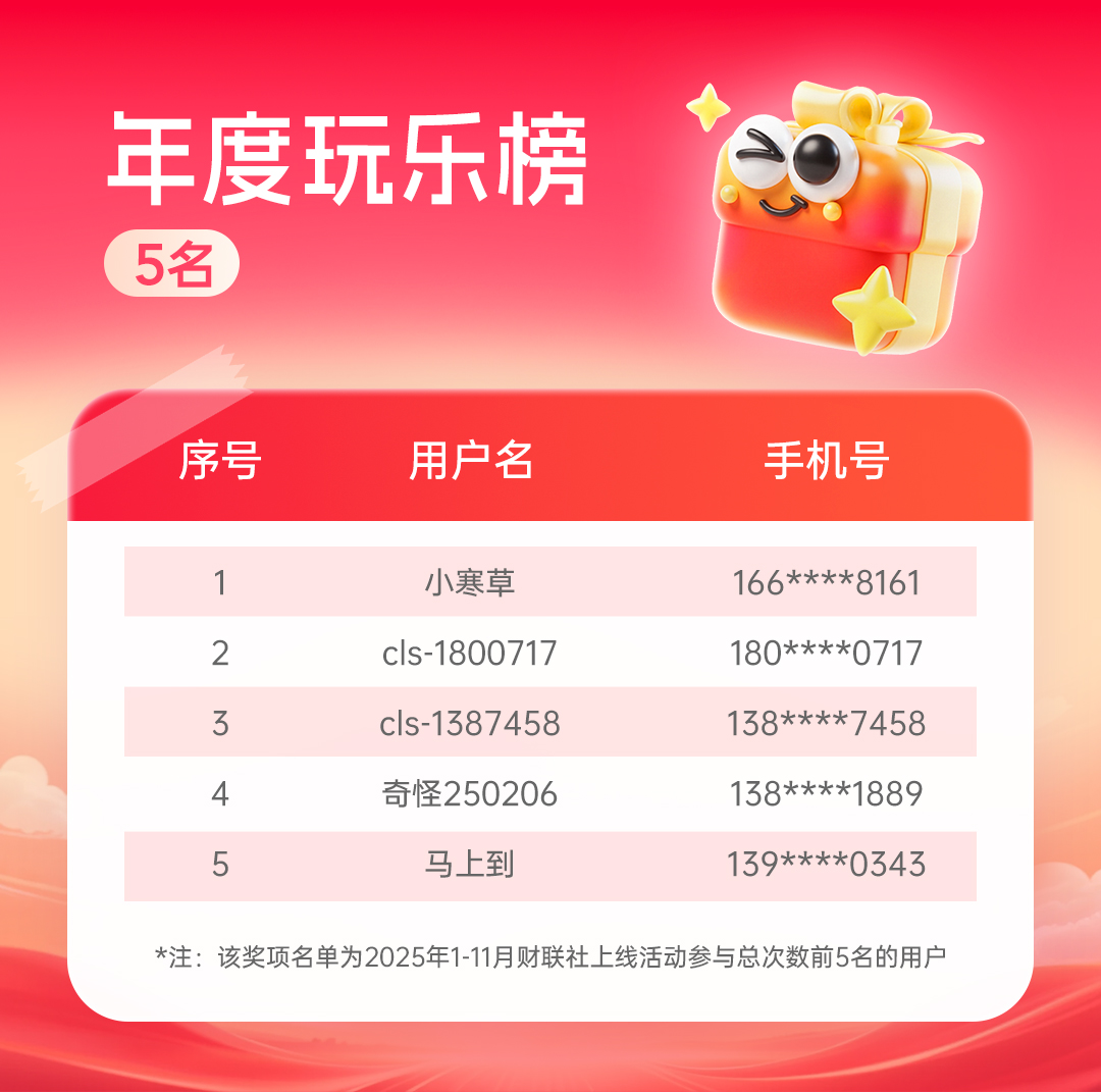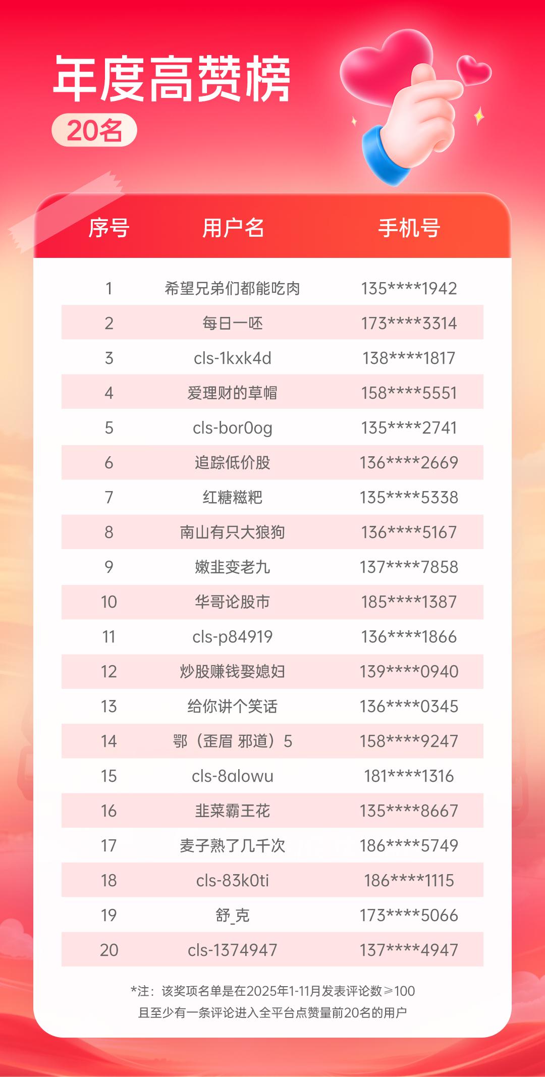 真的特别感谢你们这一年的陪伴和同行!在你们其中,还有一群身影格外亮眼,成为了“2025财联社年度用户”。一起来看看吧,或许屏幕前的你就在其中哦!