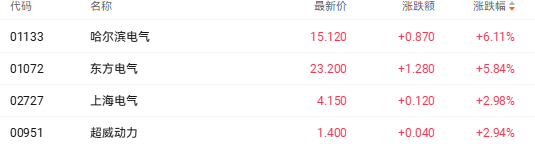 国产重型燃机出海破局引关注 哈尔滨电气和东方电气港股均涨超5%