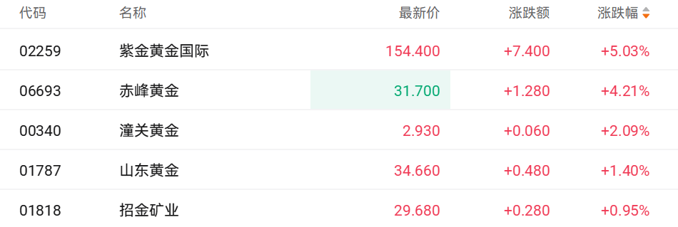 国际金价逼近历史新高 紫金黄金国际涨超5%