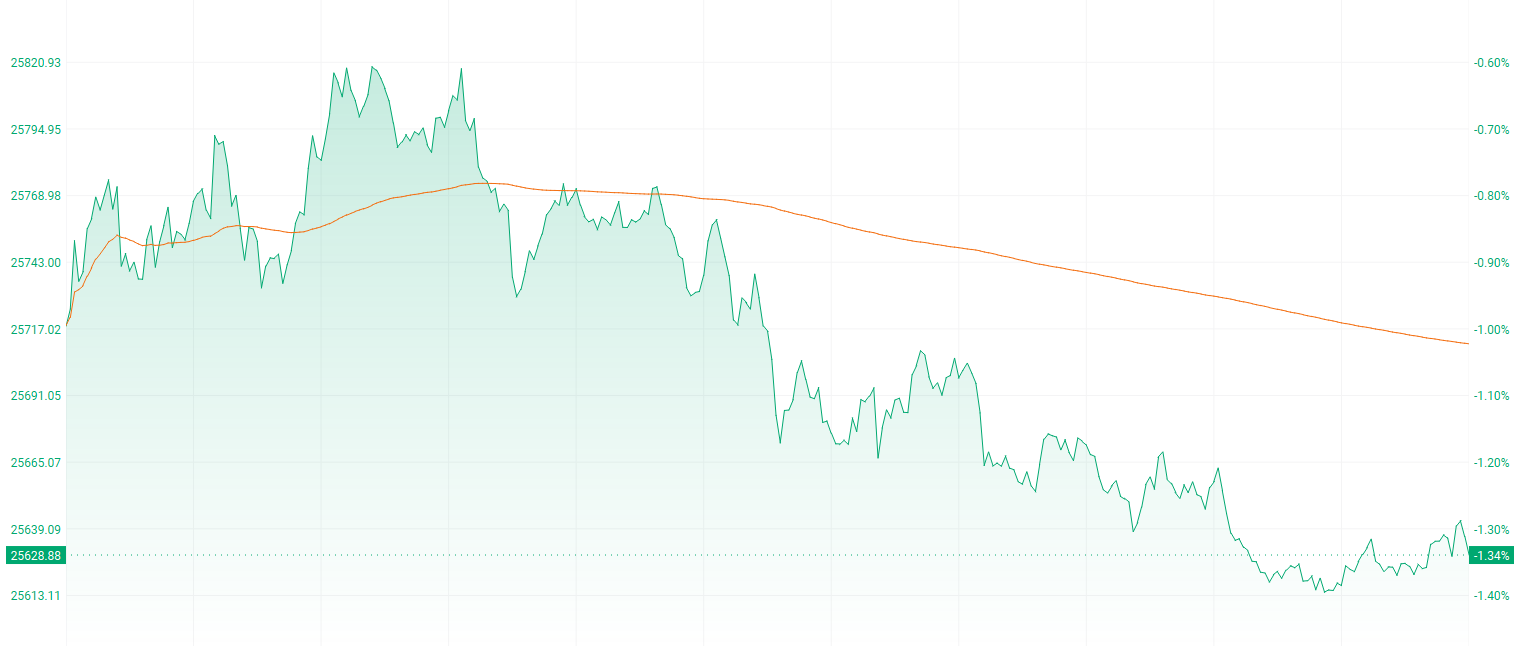 财联社12月15日讯(编辑 胡家荣)港股三大指数集体走弱。截至收盘,恒生指数跌1.34%,报25628.88点;科技指数跌2.48%,报5498.42点;国企指数跌1.78%,报8917.70点。