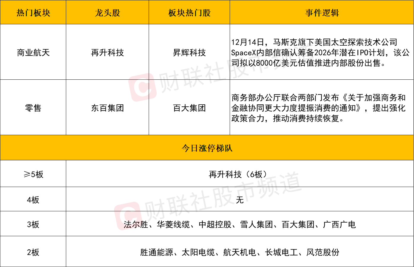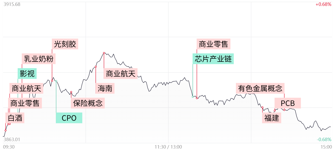 ②盘面上,商业航天概念延续强势,再升科技等20余股涨停,可控核聚变、电网设备、半导体等板块同样涨幅居前。