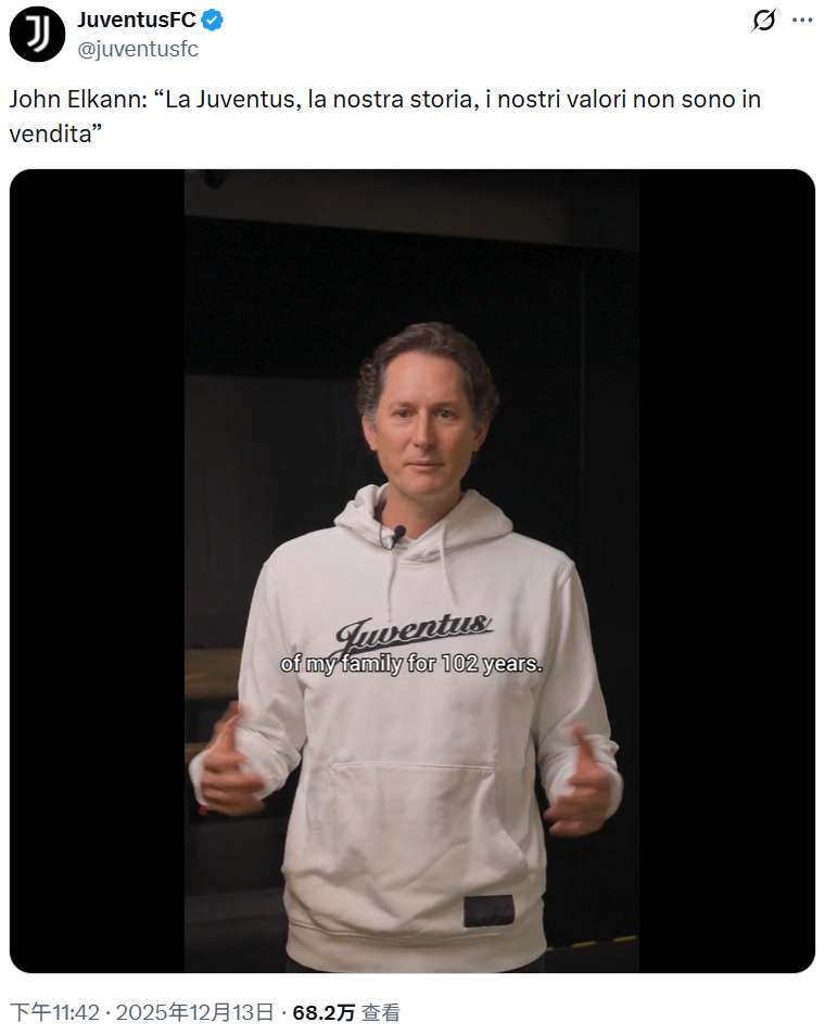 埃尔坎强调,尤文图斯是家族的历史和价值观,是不卖的。