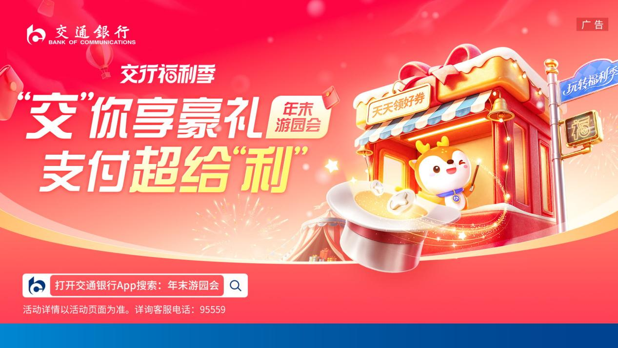 随着年末消费旺季临近,“交行福利季”再度发力,结合“线上+线下”消费场景推出“年末游园会·领海量缤纷福利”活动,促进市场消费潜力进一步释放。