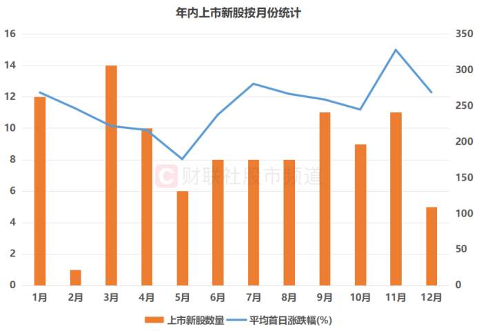 注:年内上市新股按月份统计(截至12月16日收盘)
