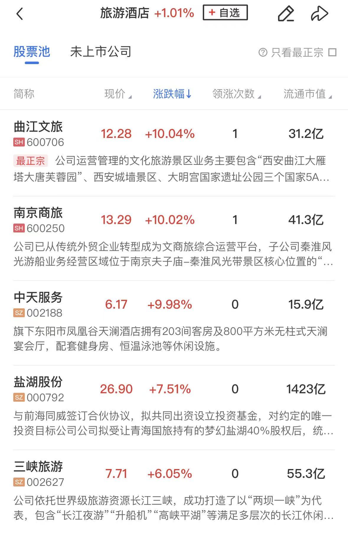大消费方向持续活跃,酒店旅游板块今日涨幅居前,曲江文旅、南京商旅涨停,三峡旅游、首旅酒店、西域旅游等涨幅居前。