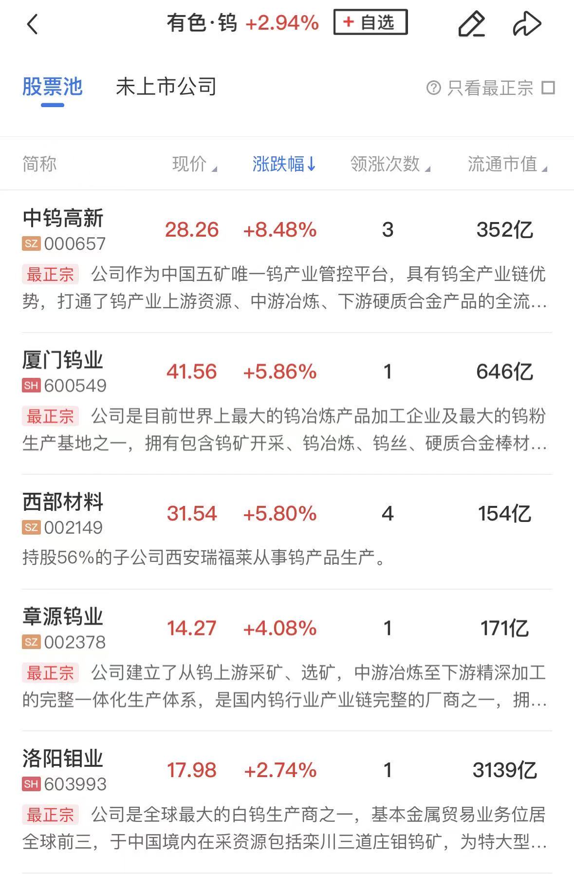 小金属同样表现活跃,其中金属钨涨幅居前,中钨高新涨超8%再创新高,厦门钨业、章源钨业、翔鹭钨业、洛阳钼业跟涨。消息面上,12月16日,钨市场价格呈现加速上行态势。据“中钨在线”统计,钨精矿每吨价格突破40万元,APT(仲钨酸铵)价格突破每吨60万元,钨粉每公斤价格也逼近千元大关。