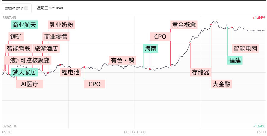 连板晋级率降至30.77%,除去巨量分歧晋级5连板的百大集团外,次高度仅有3只3连板个股。随着龙洲股份连续第二日封死一字跌停,高位股亏钱效应加速释放,此前热门的“炒地图”行情持续退潮,福建、海南板块成为杀跌重灾区,此外通宇通讯、顺灏股份等商业航天概念热门股遭遇跌停。今日新股沐曦股份上市单日最高涨超7.5倍,收盘股价跃居全市场第三,但容量抱团方向并未受到影响,算力硬件、锂电两大成长赛道双双爆发,进而带动大金融板块午后强势崛起拉升股指。随着指数率先企稳反弹,短线情绪二次探底逼近冰点后无需过于悲观,关注市场能否涌现出与指数共振的新方向。