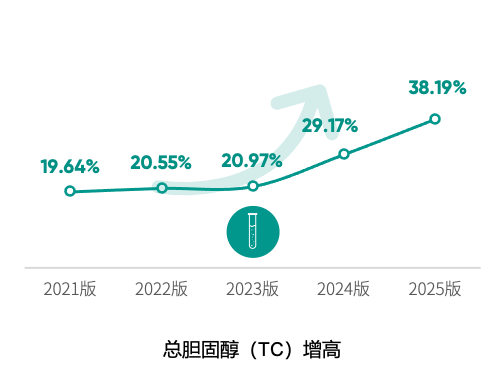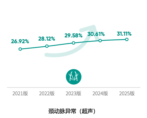 此外,《上海健康报告》对比了2021版至2025版数据发现,前列腺异常(超声)、甲状腺结节(超声)、脂肪肝(超声)、体重指数(BMI)增高、乳腺结节(超声)、颈动脉异常(超声)、总胆固醇(TC)增高这7项异常已连续五年呈上升趋势,需要引起高度重视。