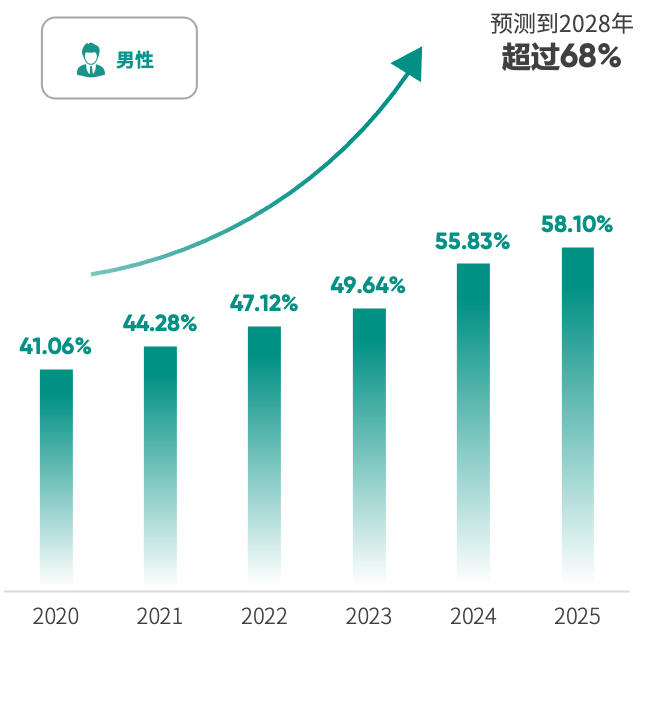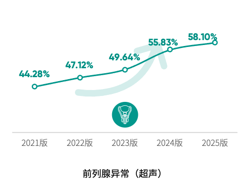 除了“发福”及其可能带来的健康问题,慢性炎症、激素紊乱和代谢异常等也为男性的前列腺埋下了“地雷”。《上海健康报告》显示,上海市男性体检人群的前列腺异常检出率为58.10%,也就是每5个男性就有近3个前列腺亮红灯。值得注意的是,上海市男性体检人群的前列腺异常检出率已连续五年上升,如不加以控制,到2028年,预计超过将68%。